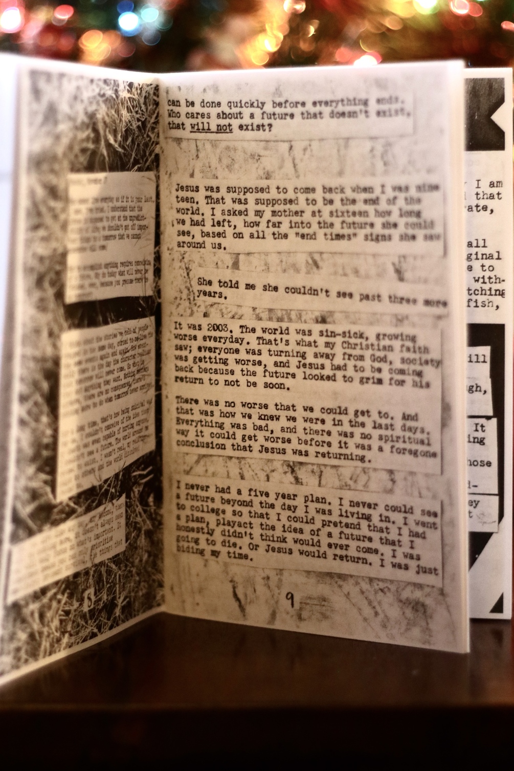 This is the first issue of a long term zine project. At the end of 2018 through the beginning of 2019 I wrote an entry a day for 100 days about “The end of the world.” It’s a zine about mental illness and religious trauma, and a critical look at the casual way with which people assume we are always on the cusp of the end of the world.